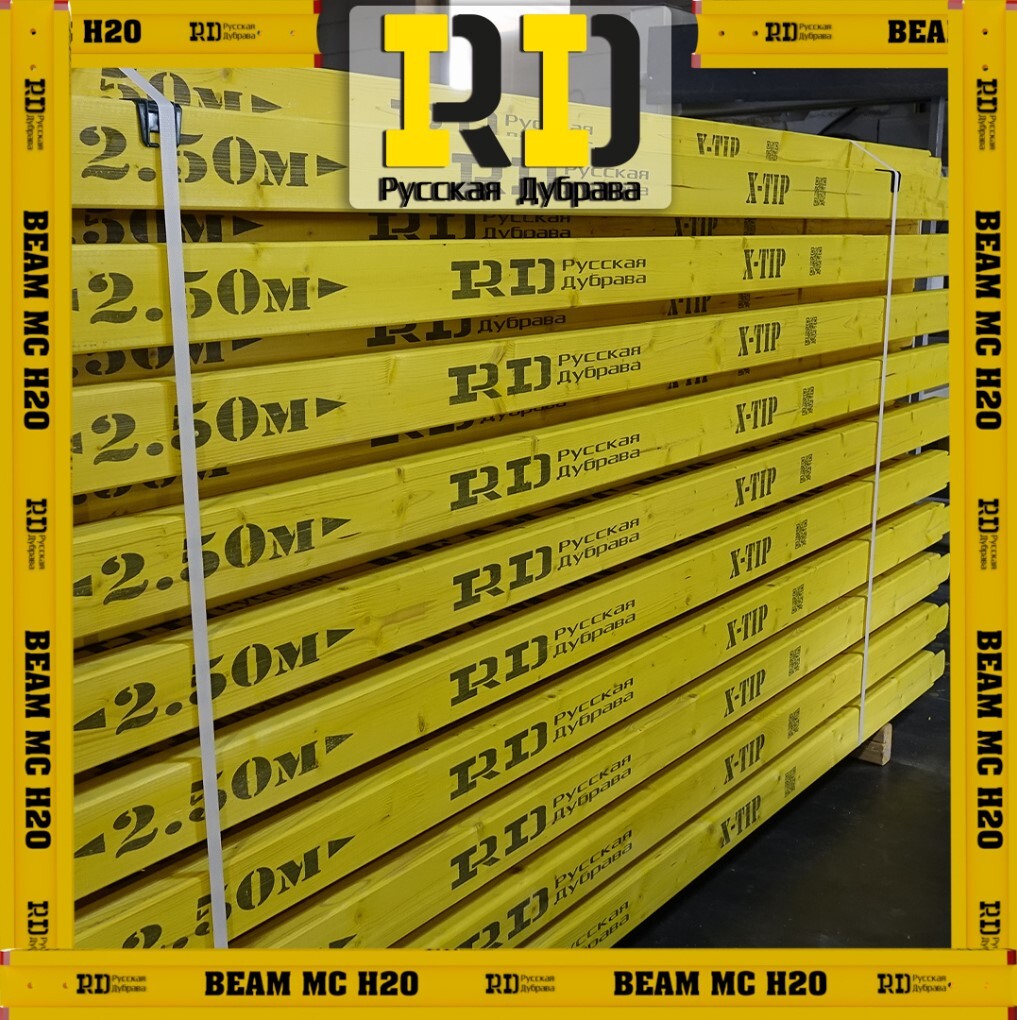 Производственные линии компании Русская Дубрава полностью автоматизированы, а готовая балка опалубки имеет всю необходимую маркировку на выходе перед отправкой ее на склад компании, а именно: